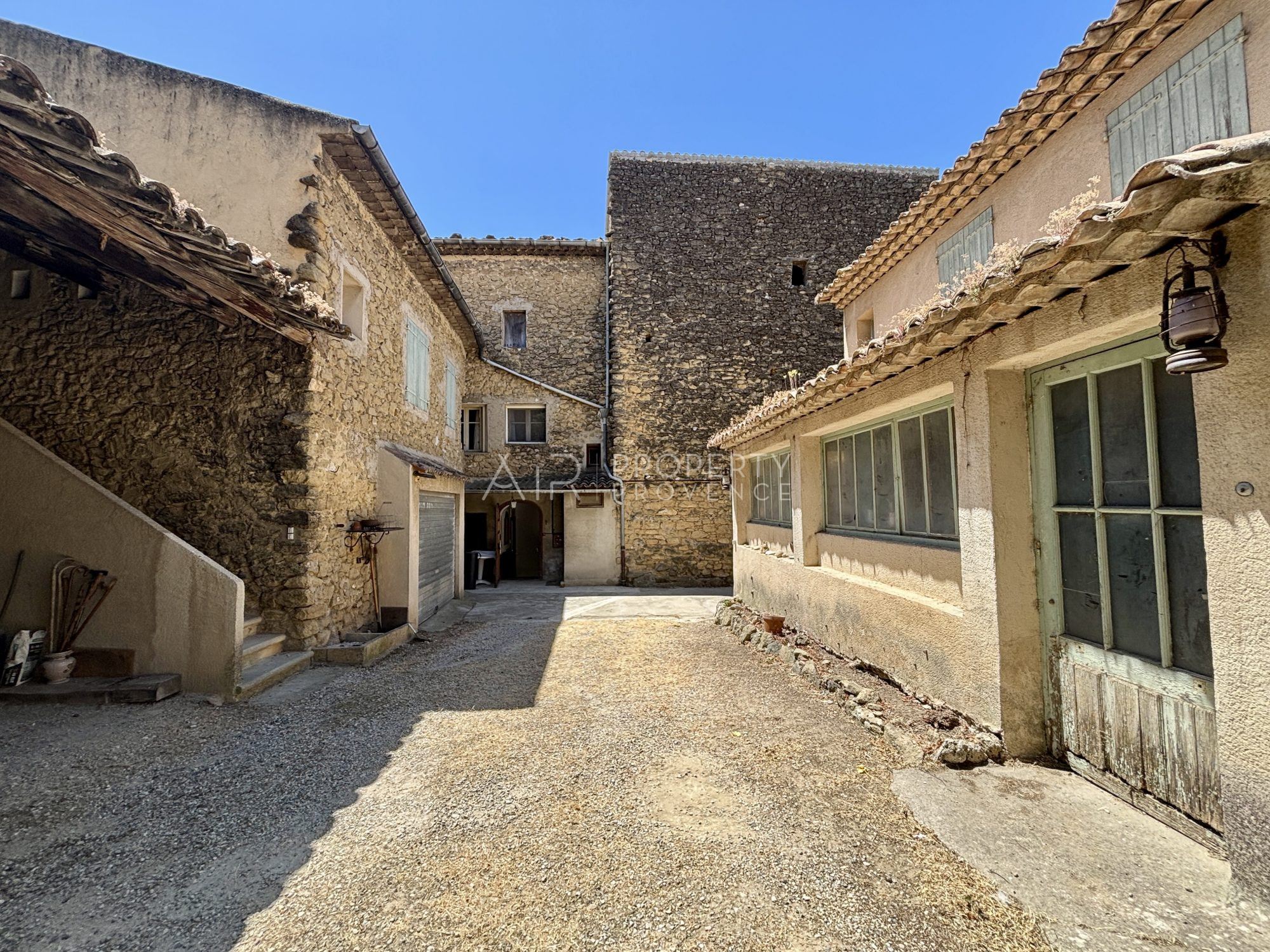 AIR Property Provence presents the 1920 House for sale in Lauris, an old property with an inner courtyard and numerous annexes (cellar, studios, garage, shed, laundry room, workshop).